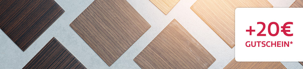 Nun haben Sie Ihr persönliches Musterstück! Denken Sie daran, Ihren neuen Fußboden zu verschiedenen Tageszeiten bei unterschiedlichen Beleuchtungen zu testen. Und sobald Sie sich für Ihren Lieblingsboden entschieden haben, können Sie den beiligenden 20€-Gutschein* nutzen - als Dankeschön, dass Sie unseren Muster-Service genutzt haben!